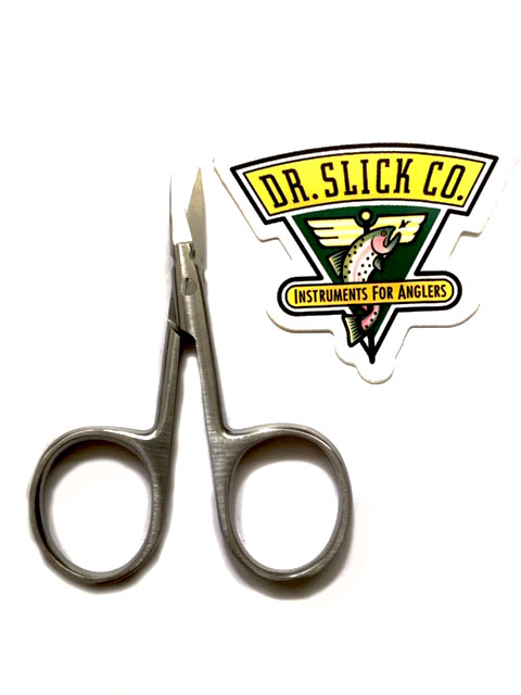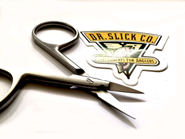 Tijera corta de hoja fina diseñada para moscas pequeñas y trabajos de detalle.