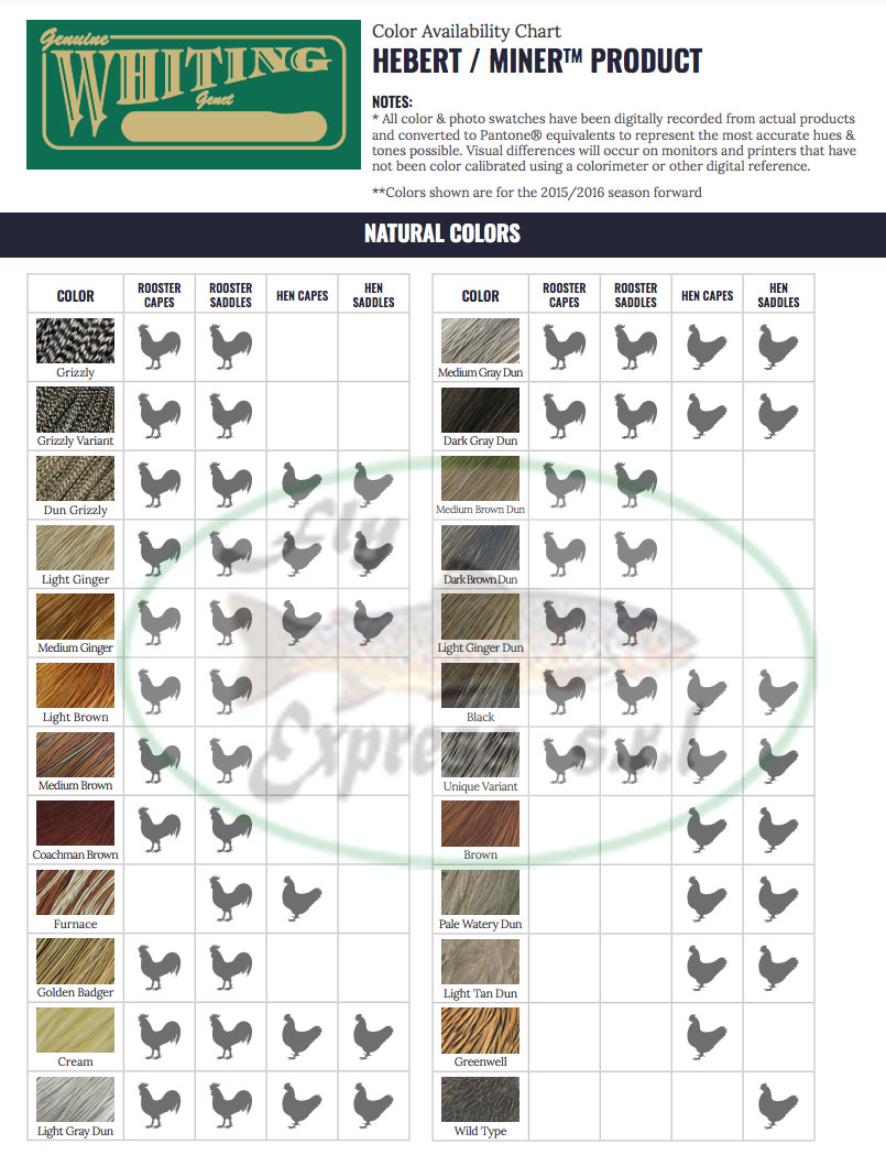 | Color Hebert Minner | 001 Grizzly, 004 Light Ginger, 007 Golden Badger, 008 Black, 009 Unique Variant, 012 Dun Grizzly, 015 Grizzly Variant, 016 barred Dark Ginger, 017 Medium Ginger, 020 Furnace, 087 Cream, 088 Light Brown, 089 Medium brown, 090 Medium Gray Dun, 091 Dark Gary Dun, 092 Light Tan Dun, 093 Light Ginger Dun, 094 Medium Brown Dun, 095 Dark Brown Dun, 099 Light Gray Dun, 203 White Dyed Brown, 249 White Dyed Coachman Brown |